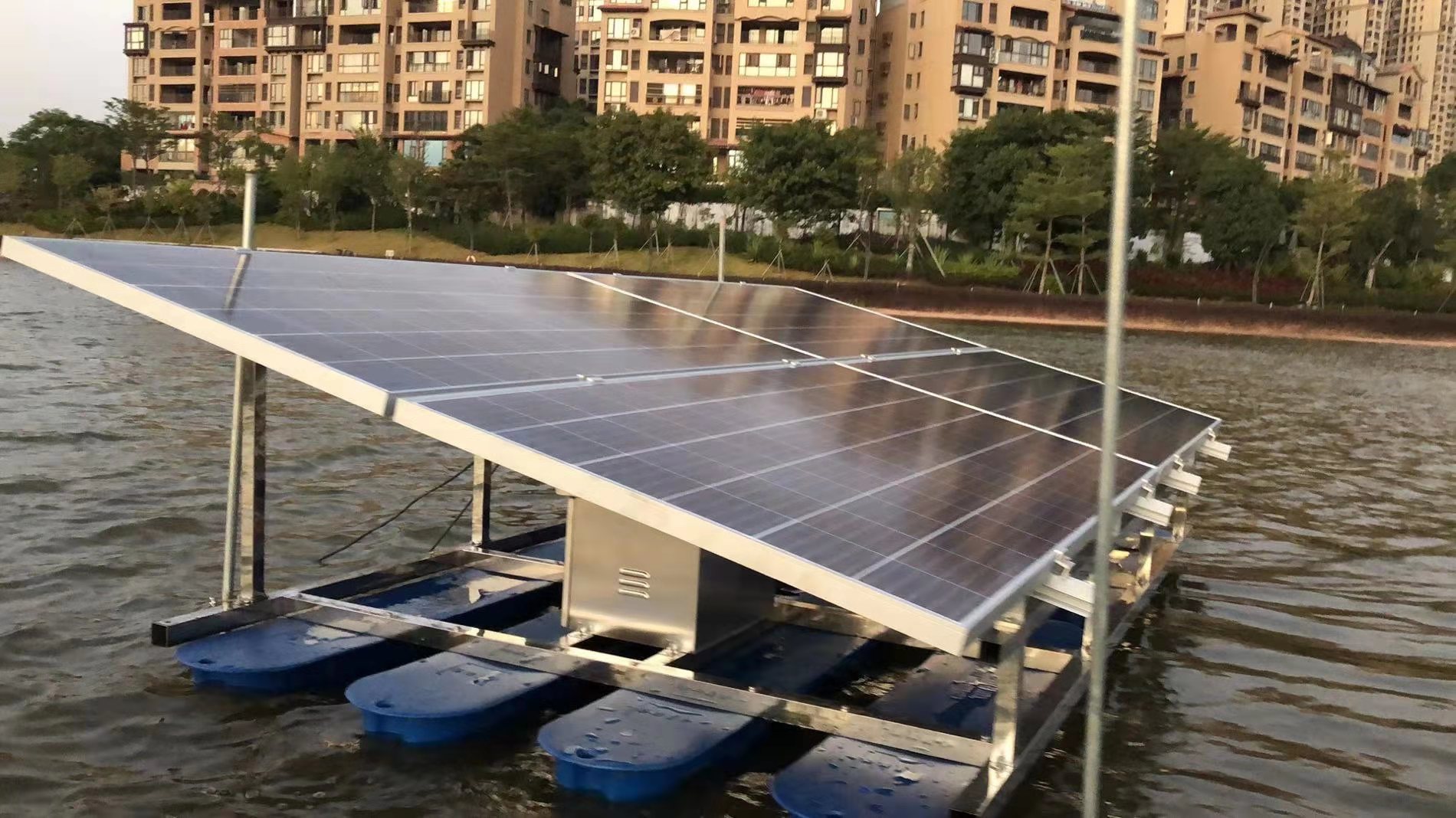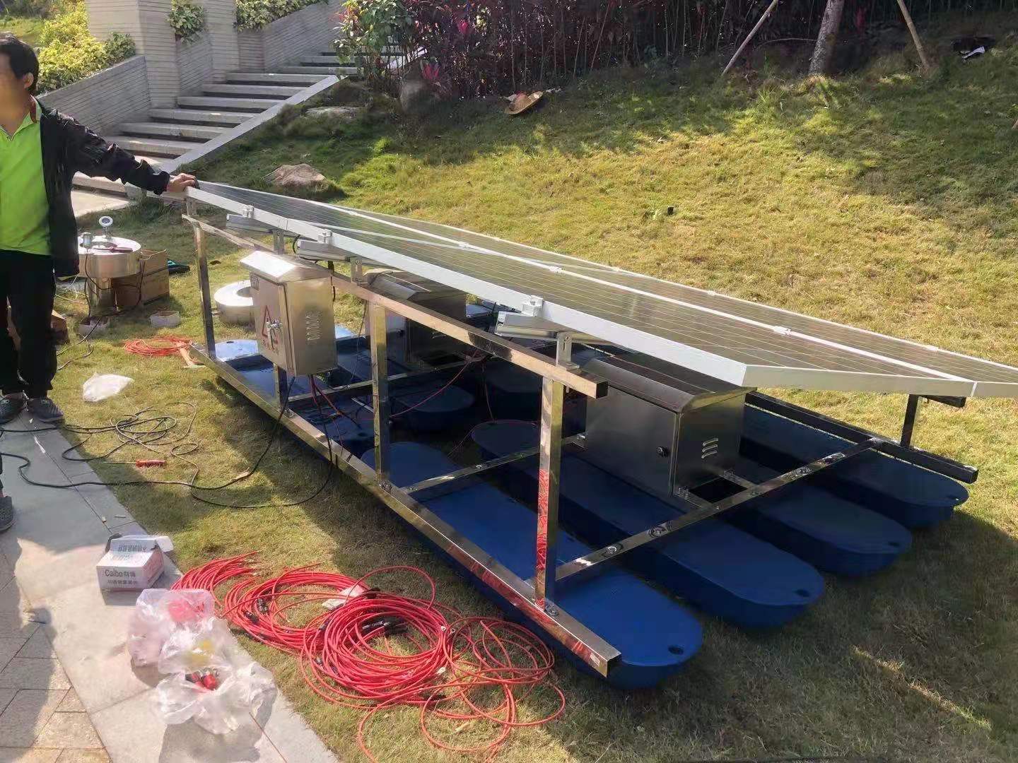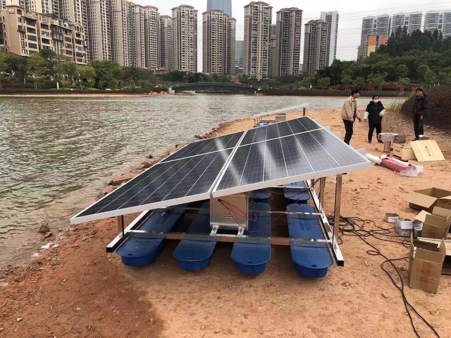 江蘇綠博斯環(huán)保推流式太陽能曝氣機(jī)以太陽能作為設(shè)備運(yùn)轉(zhuǎn)的直接動力,設(shè)置獨(dú)特的轉(zhuǎn)盤式復(fù)氧葉輪,通過轉(zhuǎn)盤葉輪旋轉(zhuǎn)撥動水循環(huán),將水橫向推流輸送至遠(yuǎn)端,底部缺氧水體向上補(bǔ)充,實(shí)現(xiàn)循環(huán)推流、混合和復(fù)氧等多重功效。江蘇綠博斯環(huán)保推流式太陽能曝氣機(jī)具有以下功能,橫向推流混合復(fù)氧:循環(huán)推流過程同時是一個混合、復(fù)氧過程,提高底層水體溶解氧含量,抑制磷釋放。 激發(fā)水體自凈功能:富氧水流改善水體底質(zhì),激發(fā)底泥生物活性,水體自凈負(fù)荷大大提高。 強(qiáng)力推流制造活水:形成橫向和縱向循環(huán)活水流,消除水體自然分層減少上下溫差。