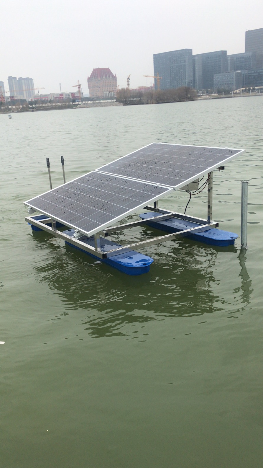 太陽能推流曝氣技術(shù)是一種專門針對水庫湖泊治理的技術(shù),尤其在黑臭湖泊治理中效果最佳,該設(shè)備在工程中有投資小,效率高,優(yōu)勢明顯.隨著經(jīng)濟快速發(fā)展,諸多湖泊污染嚴(yán)重,多數(shù)湖泊水體缺氧,植物落葉等腐敗,水體表現(xiàn)為厭氧狀態(tài),水體有異味,不適合水生生物生存,很多水生動植物消失,生態(tài)系統(tǒng)結(jié)構(gòu)嚴(yán)重失衡,功能嚴(yán)重退化甚至喪失.在湖泊治理過程中,多數(shù)采用截污納管,湖泊清淤,引水補水,曝氣充氧,微生物生態(tài)化治理等技術(shù);但是水庫湖泊和河道的治理區(qū)別比較明顯,多數(shù)湖泊離人口聚集區(qū)較遠(yuǎn),治理成本和維護成本都較高,難度也較大.