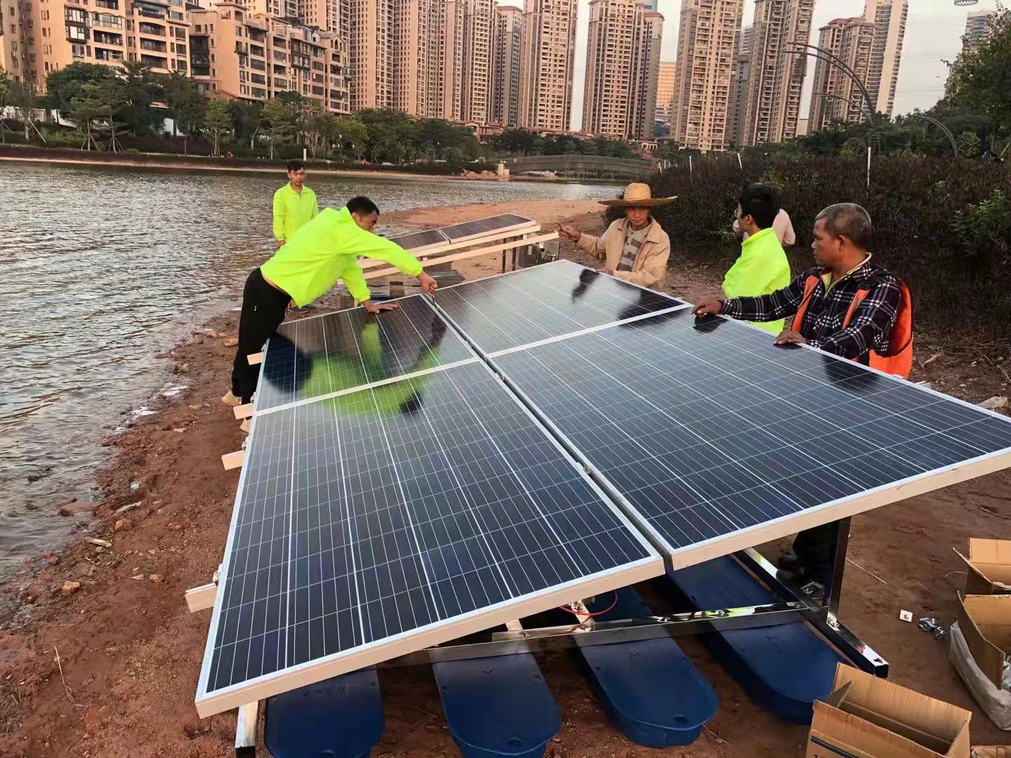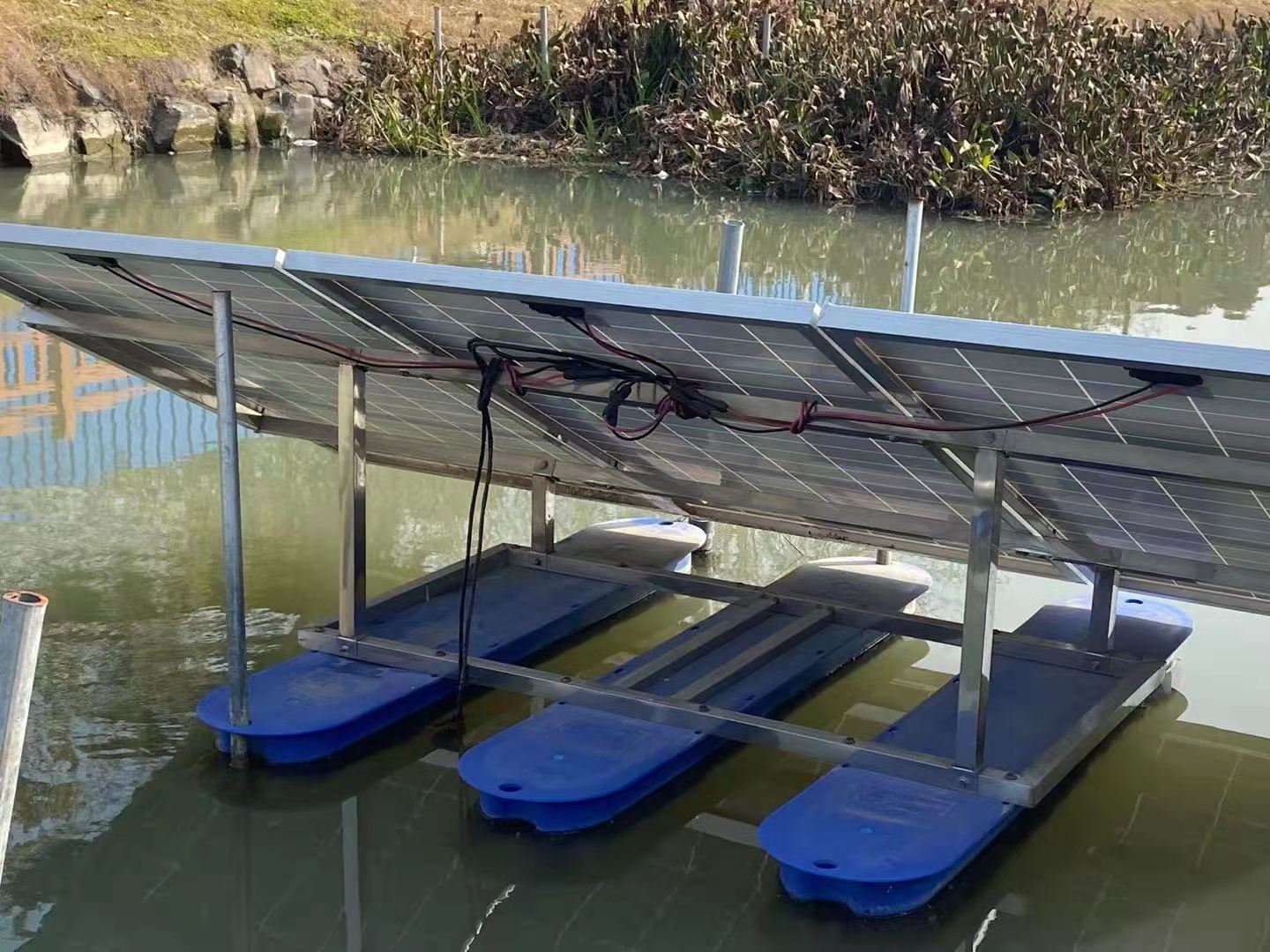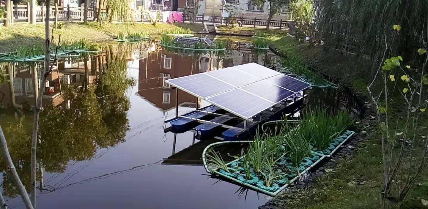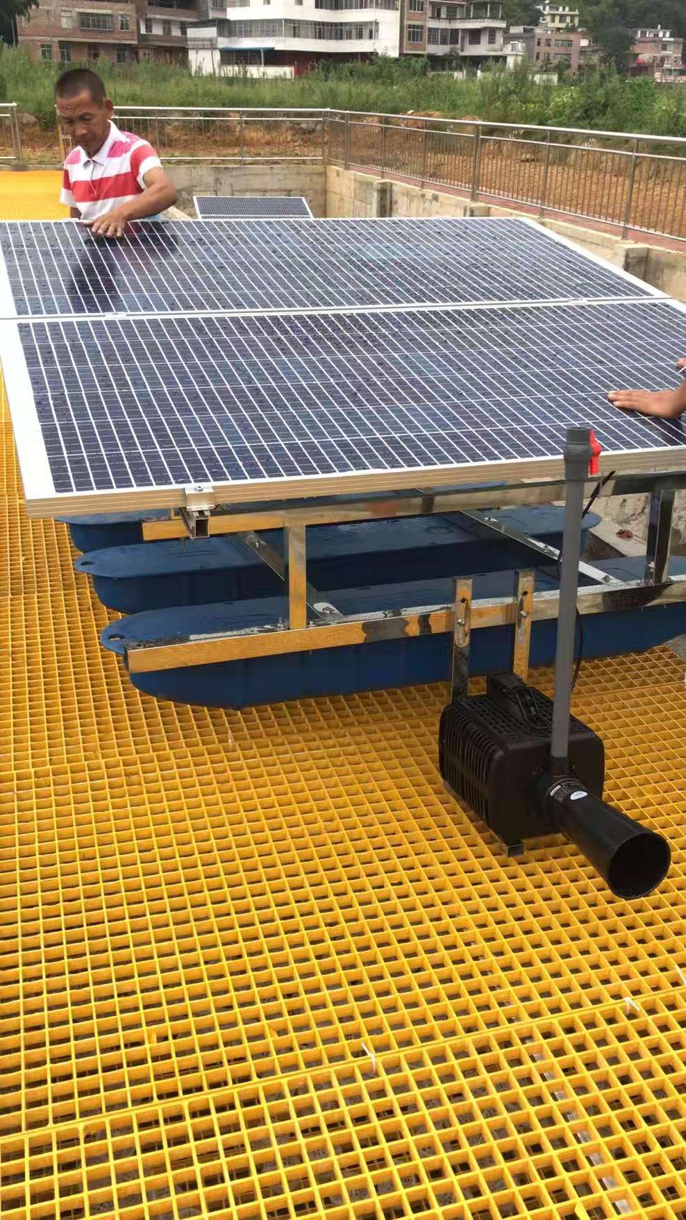 太陽能曝氣機,以太陽能作為設備運轉的直接動力,設置獨特的旋切提拉曝氣葉輪,通過葉輪旋轉提升作用,將底部缺氧水轉移到水體表面與表層富氧水混合;表層富含水通過離心旋轉橫向水平擴散、縱向進入底層缺氧區(qū)。 由此實現水體解層、增氧和縱橫向循環(huán)交換三重功效,最大限度地將表層超飽和溶解氧水轉移到水體底層,增加底層水體溶解氧,消除自然分層,提高水體自凈能力。